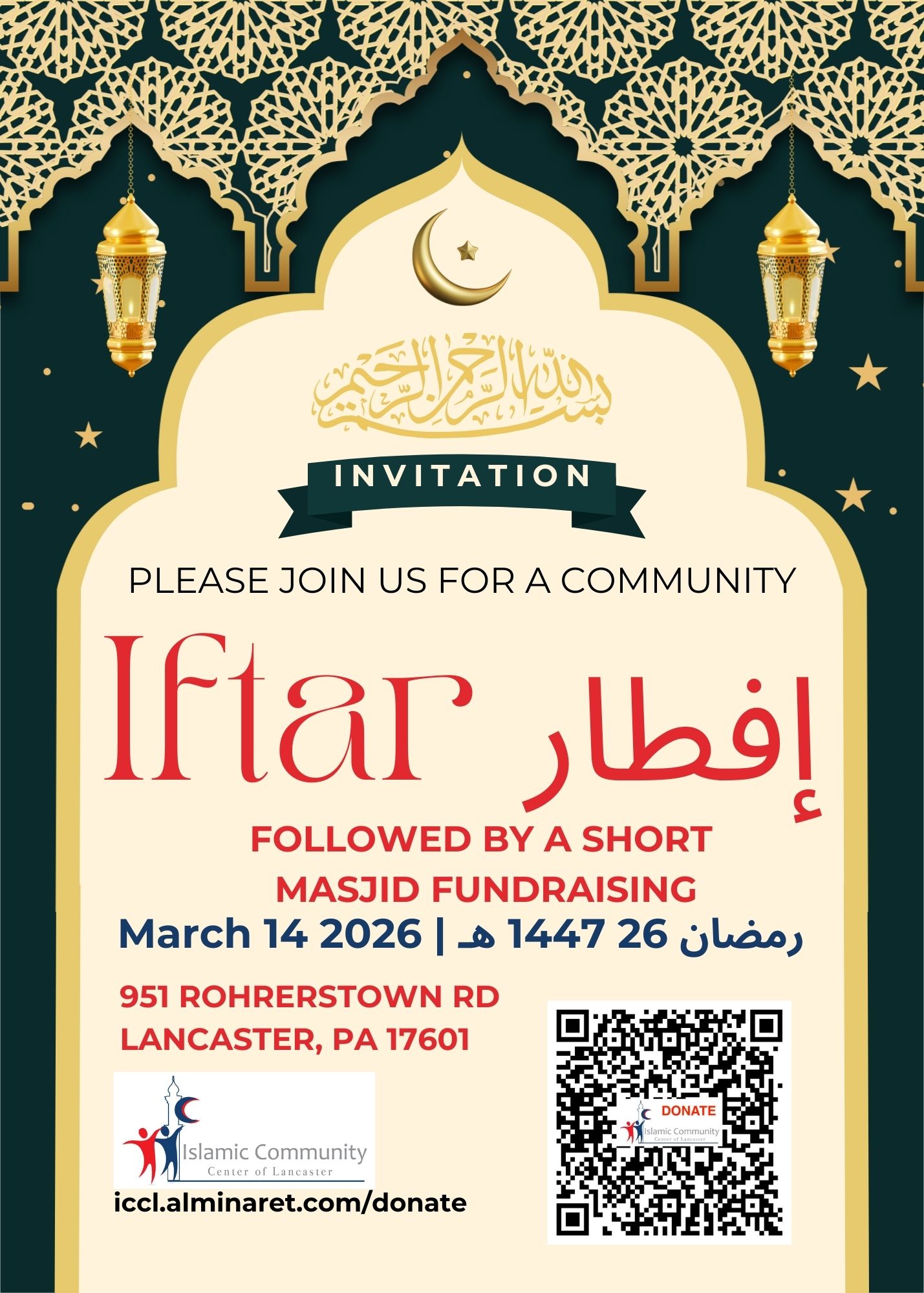 Community Iftars will be available at LGM on Saturday’s only Please help sponsor the Iftars. Iftars come with significant costs the Masjid